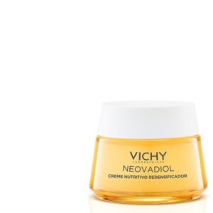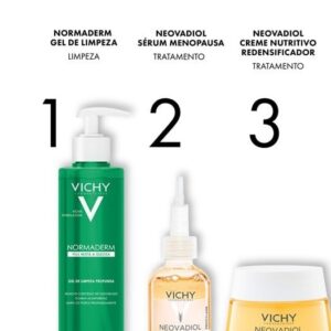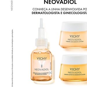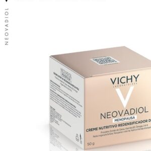 O envelhecimento da pele acelera na menopausa, uma fase da vida marcada por variações hormonais, que intensificam os 5 sinais de envelhecimento visíveis nessa fase: rugas, flacidez, perda de densidade, tom irregular e pele seca.Desenvolvido para reduzir os impactos da menopausa na pele, a linha Vichy Neovadiol Menopausa é a Nº1 skincare para menopausa¹O Neovadiol Creme Nutritivo Redensificador reduz os impactos da pele na menopausa.