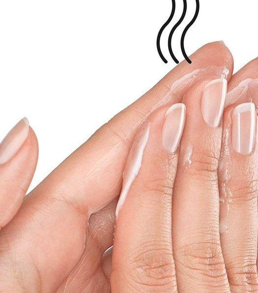 Para firmeza: Aplique o creme com a mão direita a partir do lado esquerdo do pescoço até a mandíbula. Repetir o mesmo movimento para o outro lado.