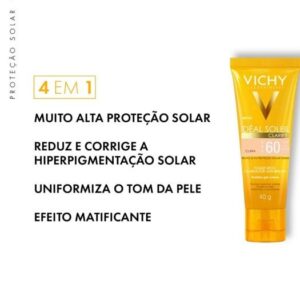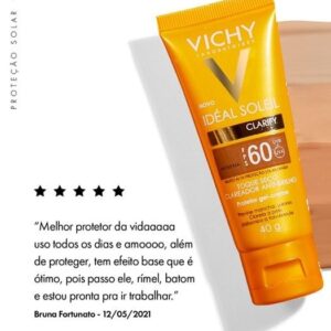O Idéal Soleil Clarify FPS 60 é um protetor solar facial com cor que fornece alta proteção contra os raios UVA, UVB e luz visível, possui cobertura de maquiagem, uniformizando o tom da pele, e ativos dermatológicos que auxiliam na redução e prevenção de manchas. Clarify, em apenas um produto, protege, previne, uniformiza e matifica, todos esses benefícios são somados a uma textura leve, de rápida absorção e toque seco, deixando a pele com um aspecto natural e saudável.