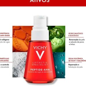 Com toque seco, oil free e efeito matte, o Liftactiv Peptide-AHA, é um sérum corretor de rugas e oleosidade. Com ação e alta concentração de colágeno, o produto é o primeiro sérum anti-idade desenvolvido com exclusividade para a pele brasileira e oleosa. Podendo ser aplicado pela manhã ou à noite, o creme promove a redução de rugas e linhas finas, além de reduzir poros e sinais da oleosidade.