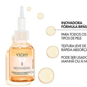 O Neovadiol Sérum Multicorretor de sinais da idade atua em 5 benefícios para reduzir os impactos da menopausa na pele: